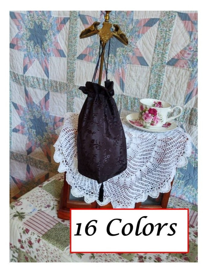 Floral Brocade Reticule drawstring bag in 16 colors, 19th Century Victorian, Civil War, Edwardian, Regency